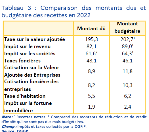 Rapport des recettes fiscales budgétaires collectées par la DGFIP en 2022