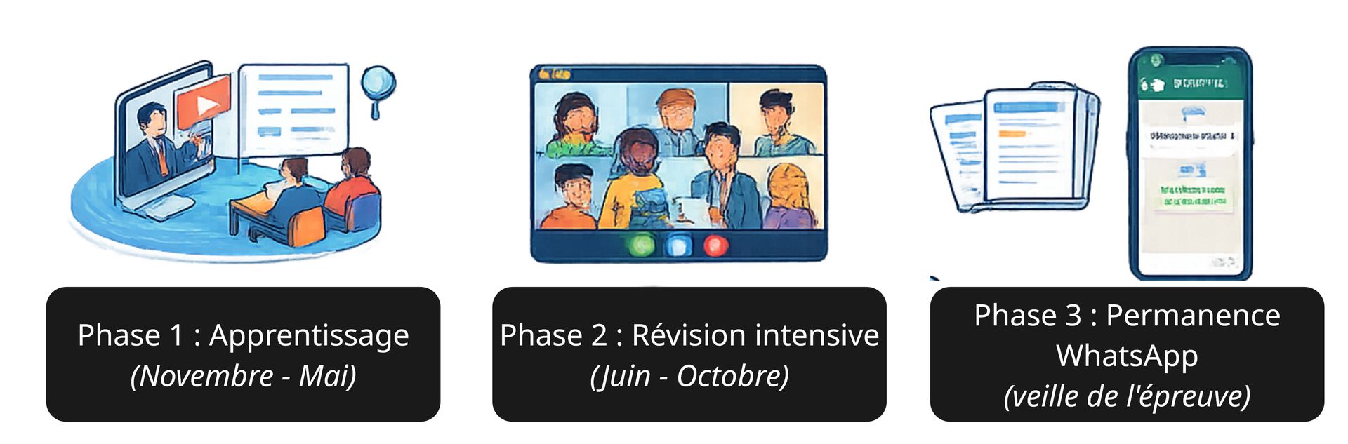 ️Des LIVES d'une à deux heures, avec nos professeurs, pour aborder des sujets prédéfinis ainsi que l'approfondissement de vos difficultés, tout en fixant un rythme et un cadre de travail.